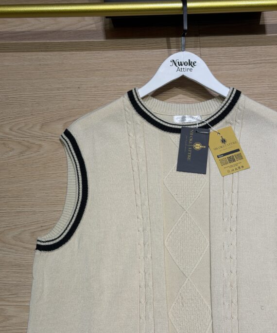 Milky Sleeveless Cable Knit Turkey Sweater