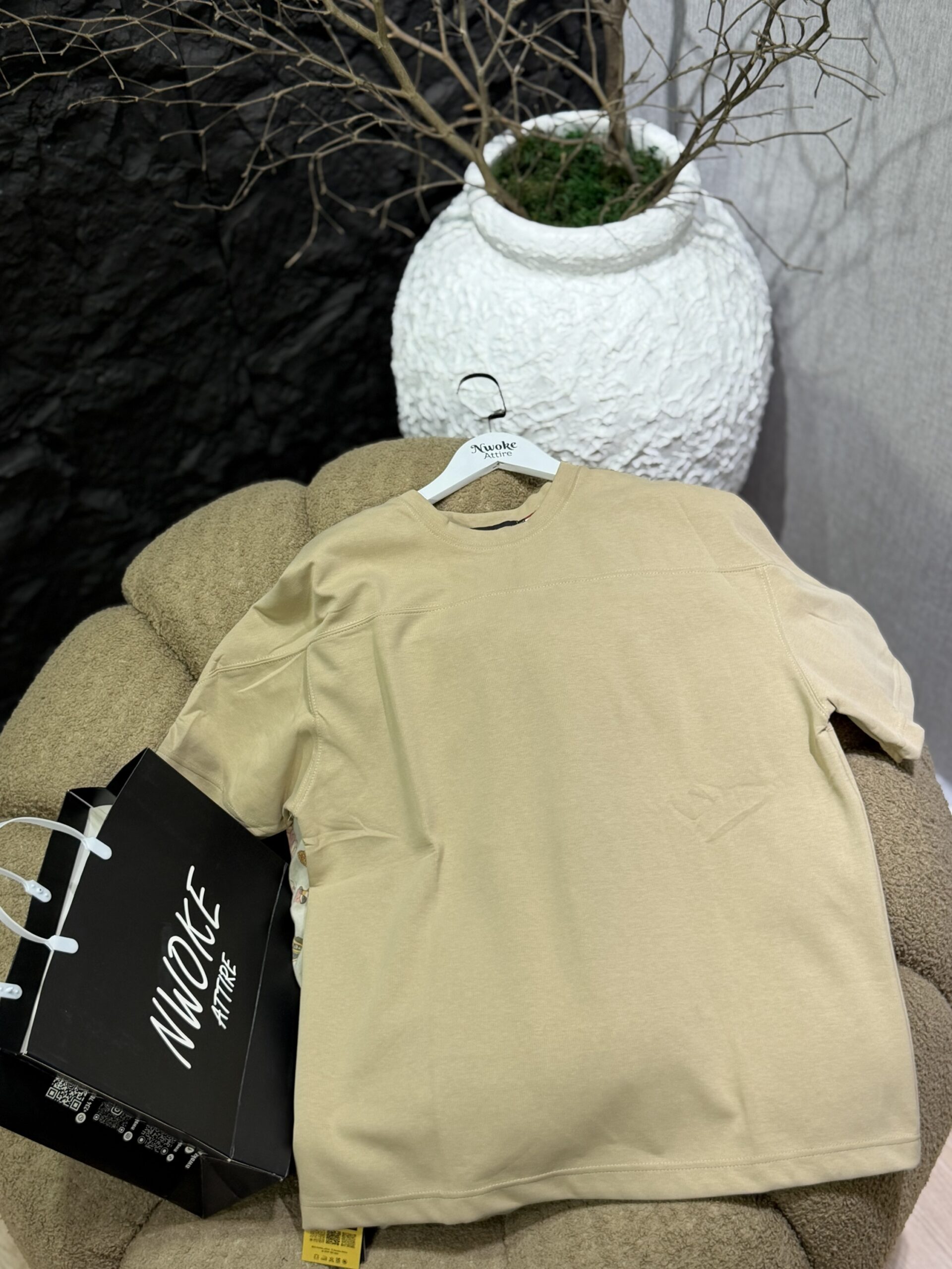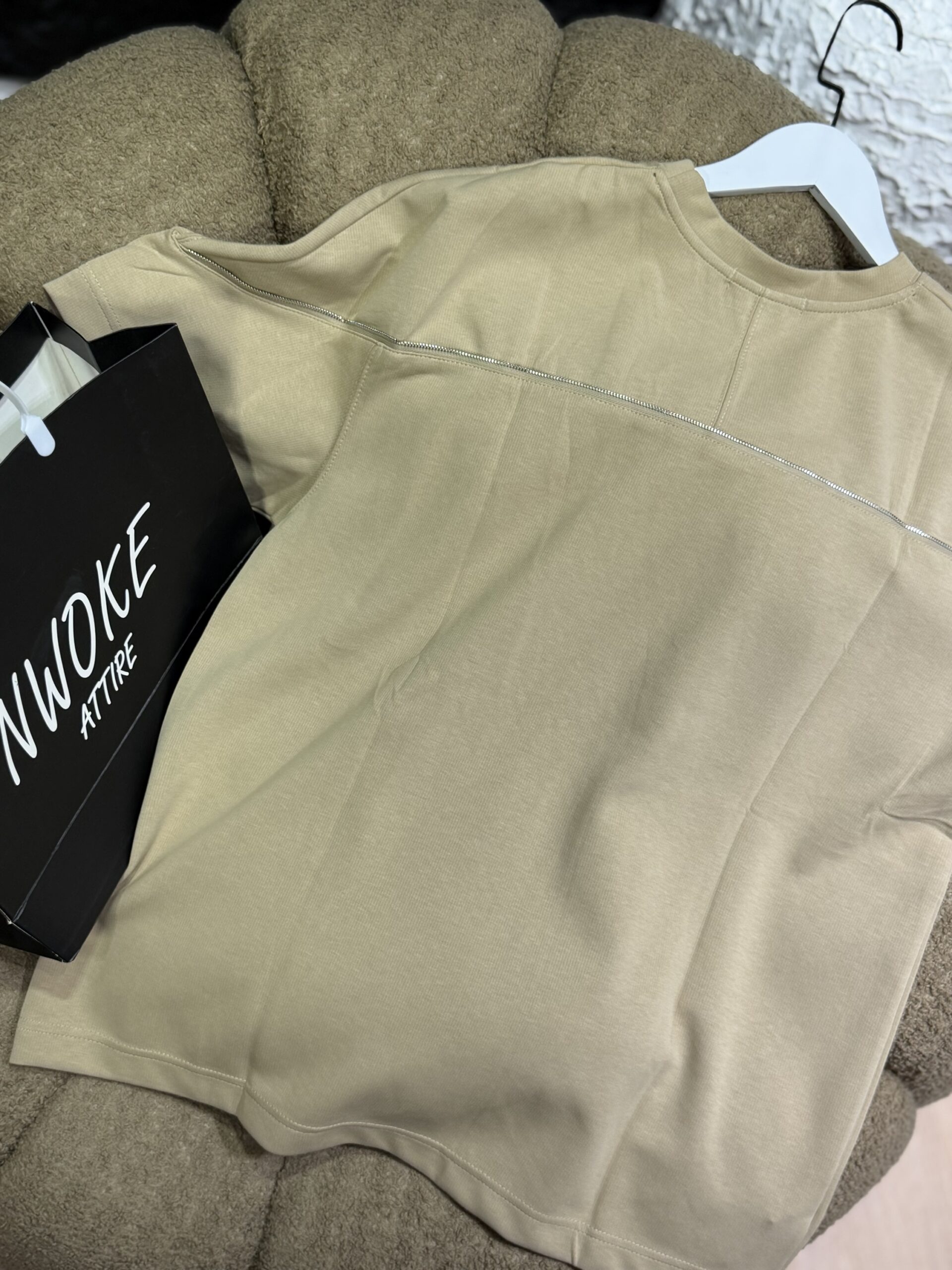 A classic Brown zip pattern short-sleeve polo available in XXXL crafted from smooth premium fabric. It offers a sleek, modern look perfect for formal events or elevated smart-casual wear. Priced at 60,000