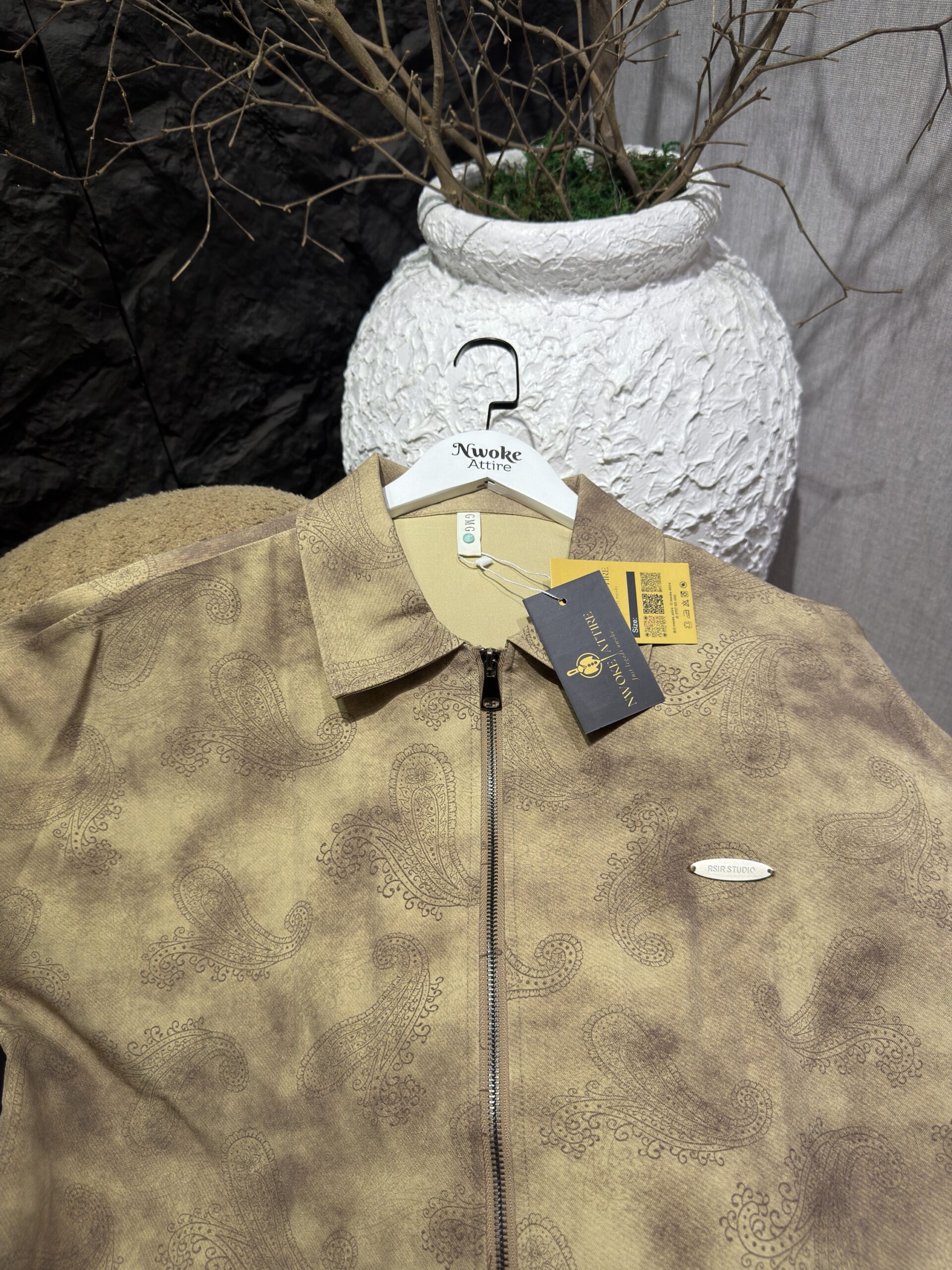 The Paisley Zip-Up Polo Shirt is a statement piece that blends vintage-inspired patterning with modern tailoring. Crafted from a lightweight, breathable fabric, this short-sleeve shirt features an all-over paisley print that adds depth, texture, and visual sophistication.