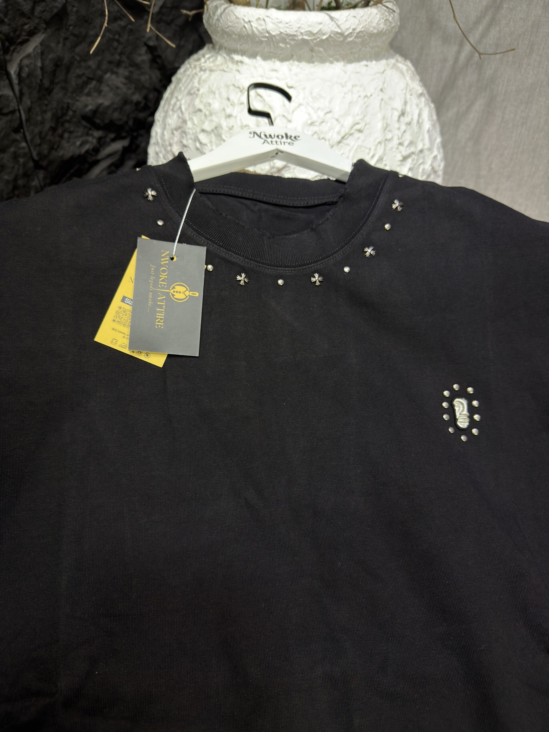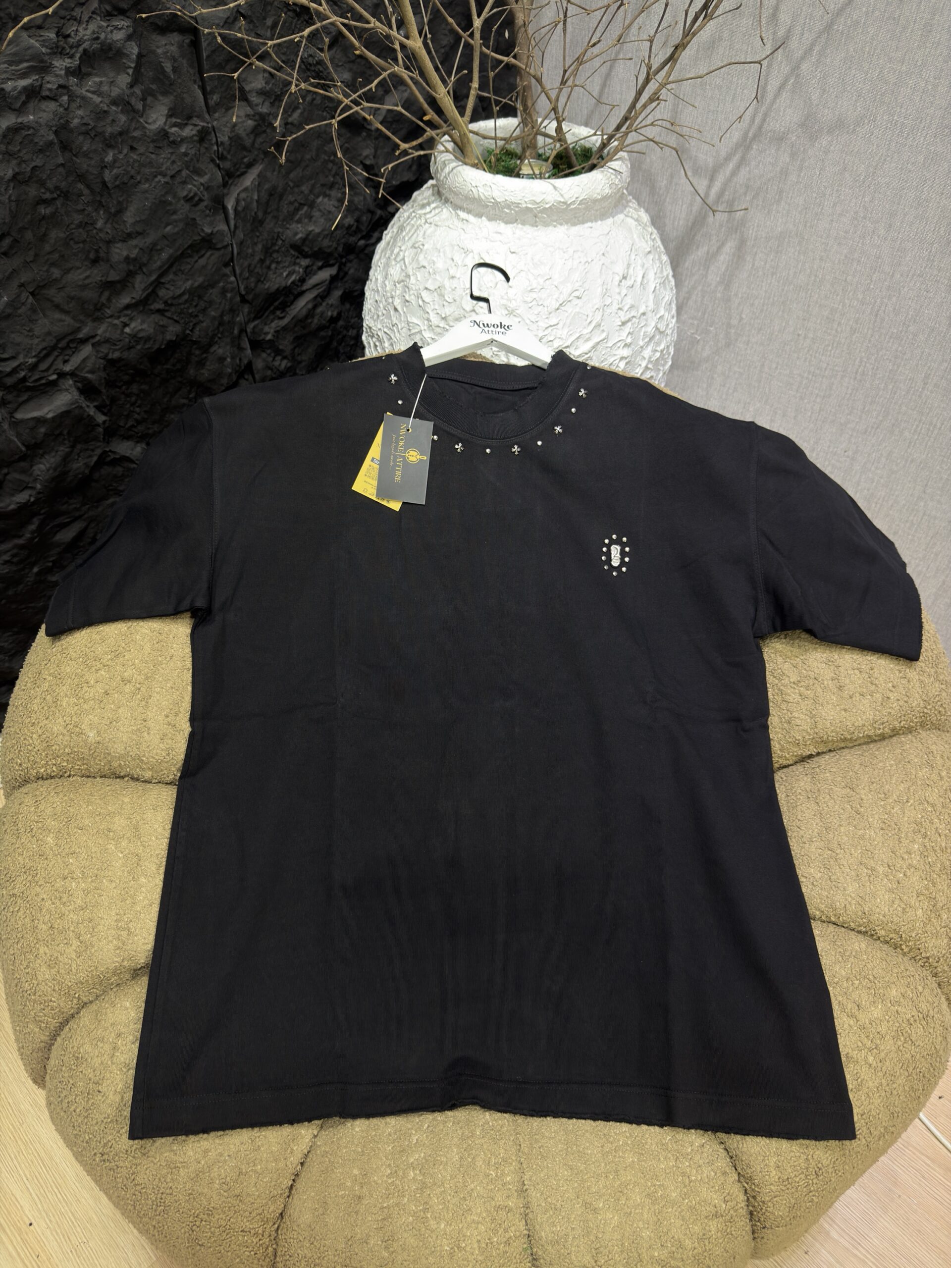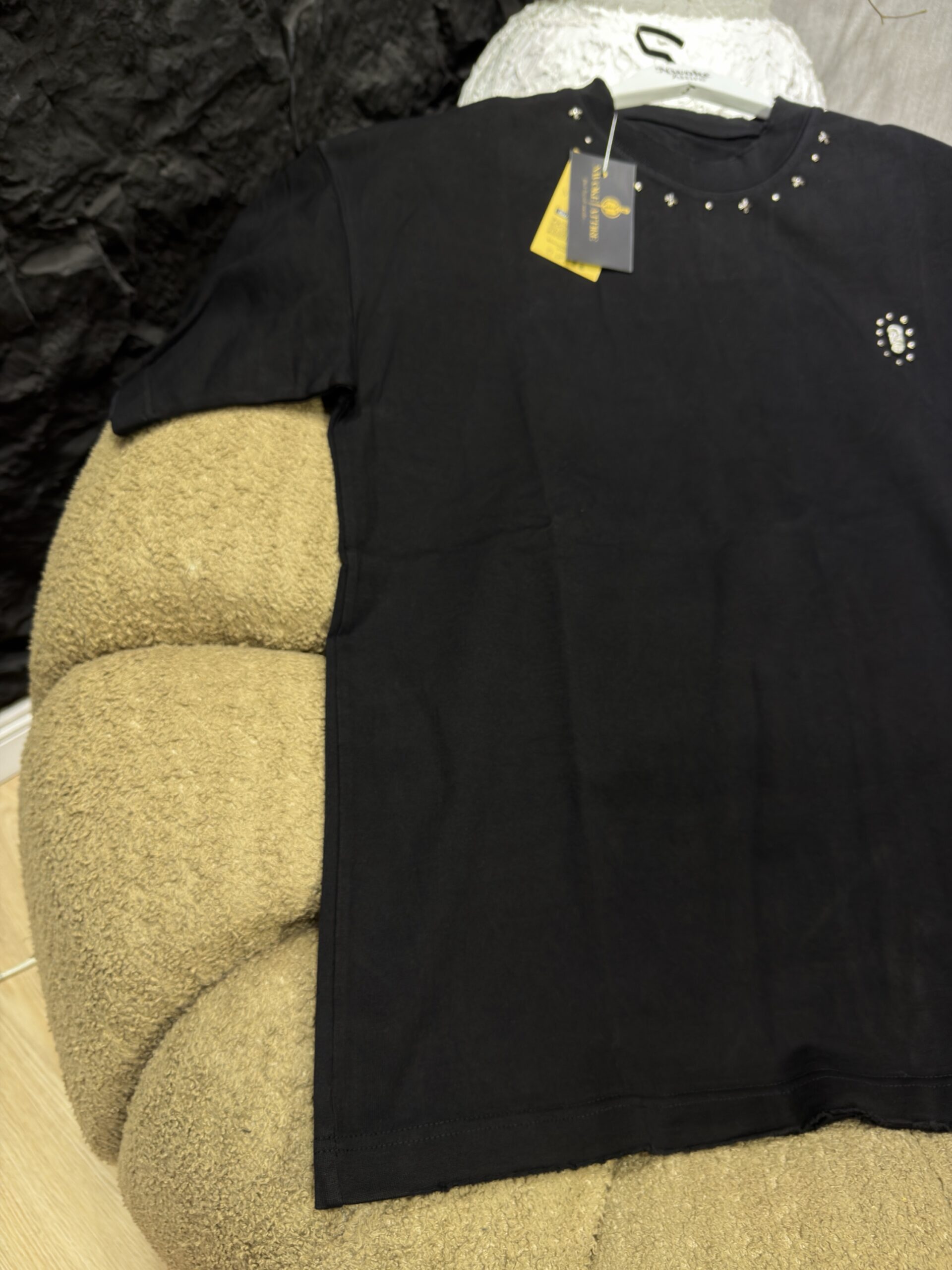 Be the first to review “Studded Neckline Black Allure T-Shirt”